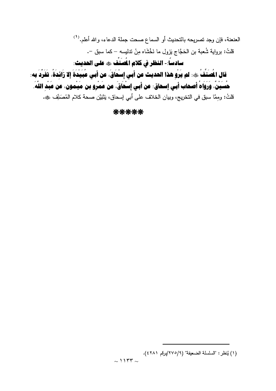 قلتُ: ومِمَّا سبق في التخريج، وبيان الخلاف على أبي إسحاق، يَتَبَيَّن صحة كلام المُصَنِّف - رضي الله عنه -.
