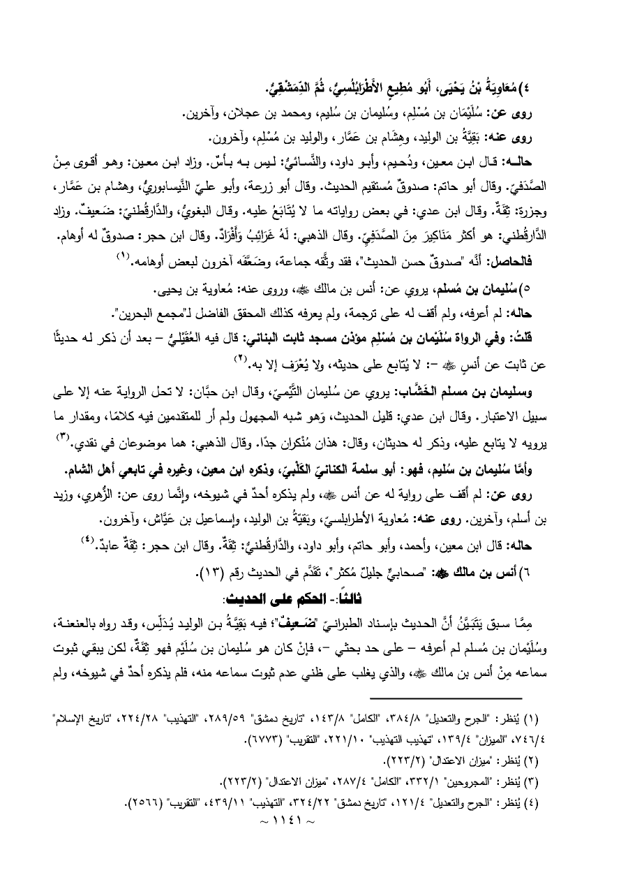 ٥) سُليمان بن مُسلم، يروي عن: أنس بن مالك - رضي الله عنه -، وروى عنه: مُعاوية بن يحيى.