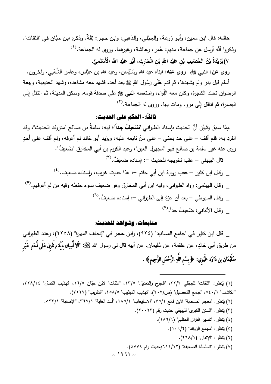 ٧) بُرَيْدَةُ بْنُ الحُصَيب بْنِ عَبْدِ اللَّهِ بْنِ الْحَارِثِ، أَبُو عَبْدِ اللَّهِ الْأَسْلَمِيُّ.