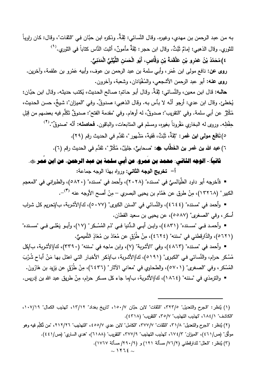 ثانياً: - الوجه الثاني: محمد بن عَمرو، عن أبي سلمة بن عبد الرحمن، عن ابن عُمر - رضي الله عنه -.