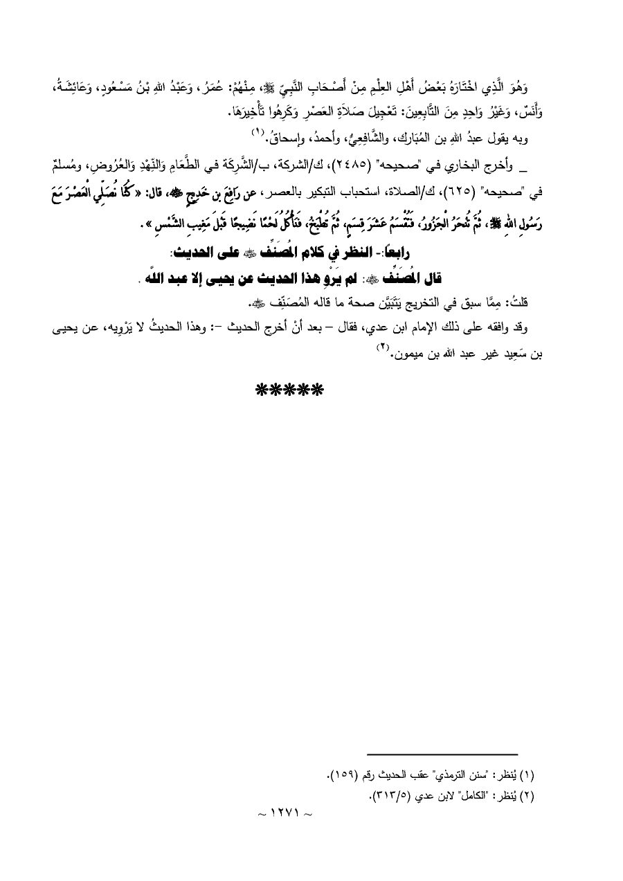 رابعاً: - النظر في كلام المُصَنِّف - رضي الله عنه - على الحديث: