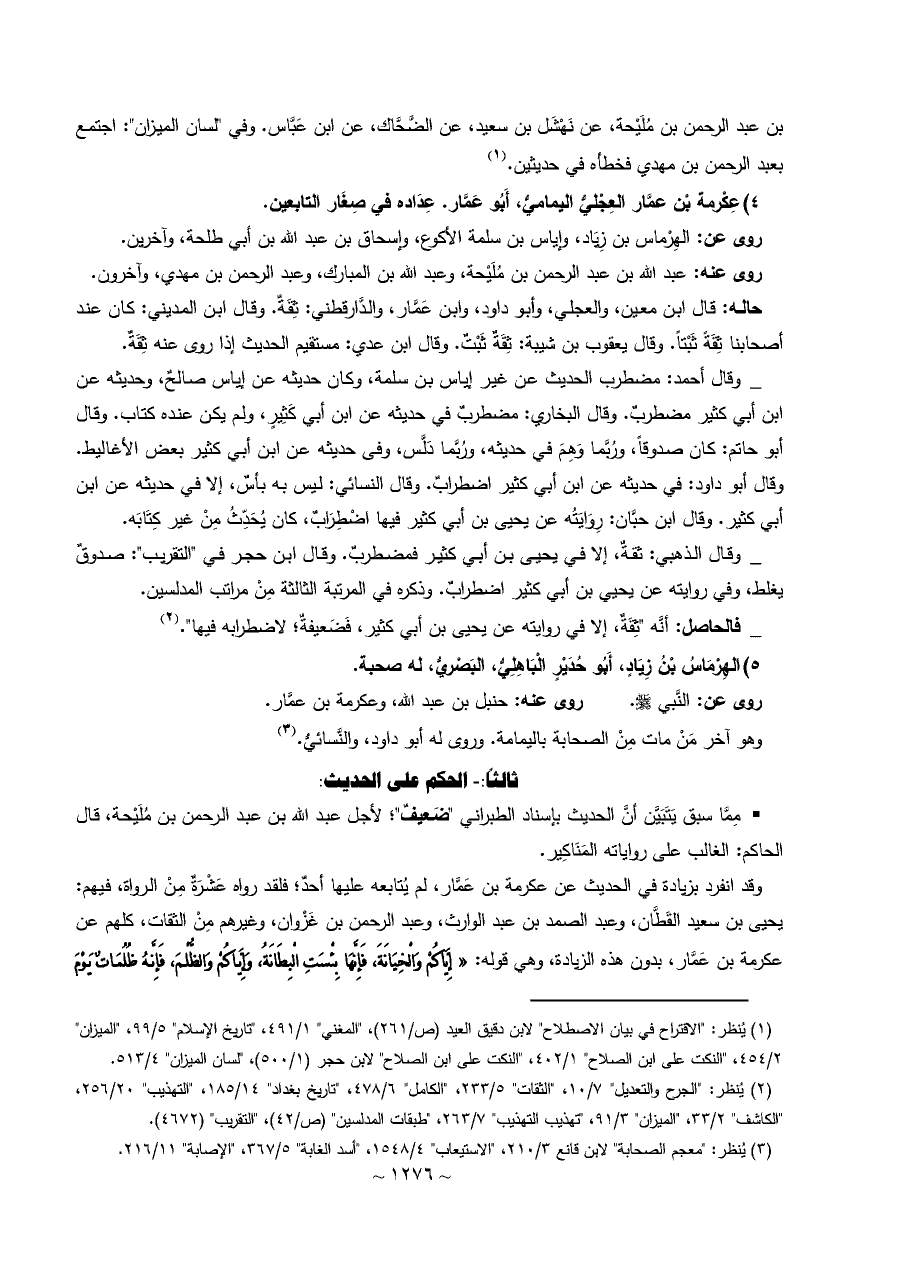 ٤) عِكْرمة بْن عمَّار العِجْليُّ اليماميُّ، أَبُو عَمَّار. عِدَاده في صِغَار التابعين.