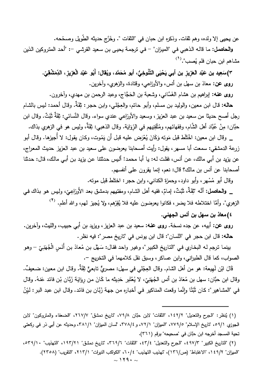 ٣) سَعِيد بن عَبْد العَزِيزِ بن أبي يَحْيَى التَّنُوخِيُّ، أبو مُحَمَّد، ويُقال: أَبُو عَبْد الْعَزِيزِ، الدِّمَشْقِيّ.