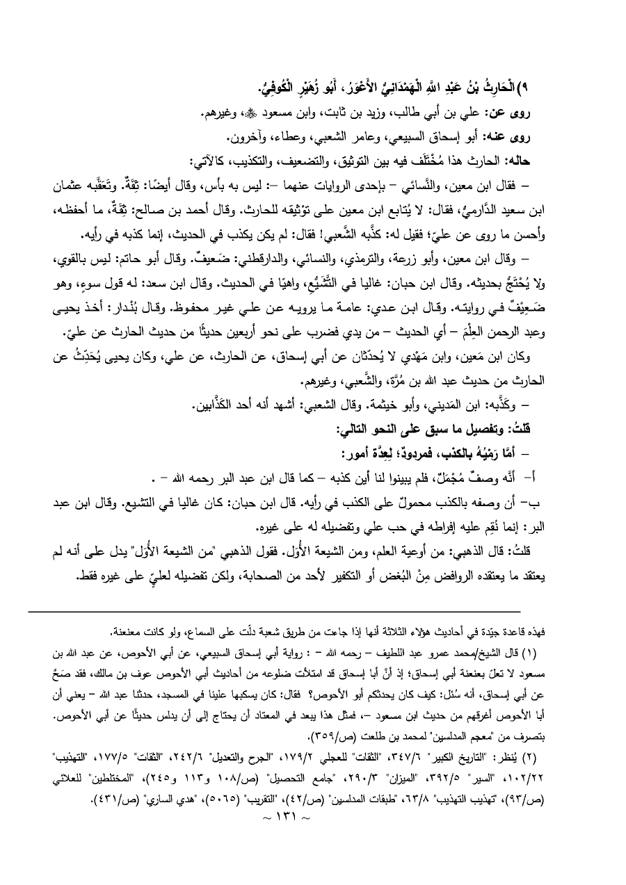 ٩) الْحَارِثُ بْنُ عَبْدِ اللَّهِ الْهَمْدَانِيُّ الأَعْوَرُ، أَبُو زُهَيْرٍ الْكُوفِيُّ.
