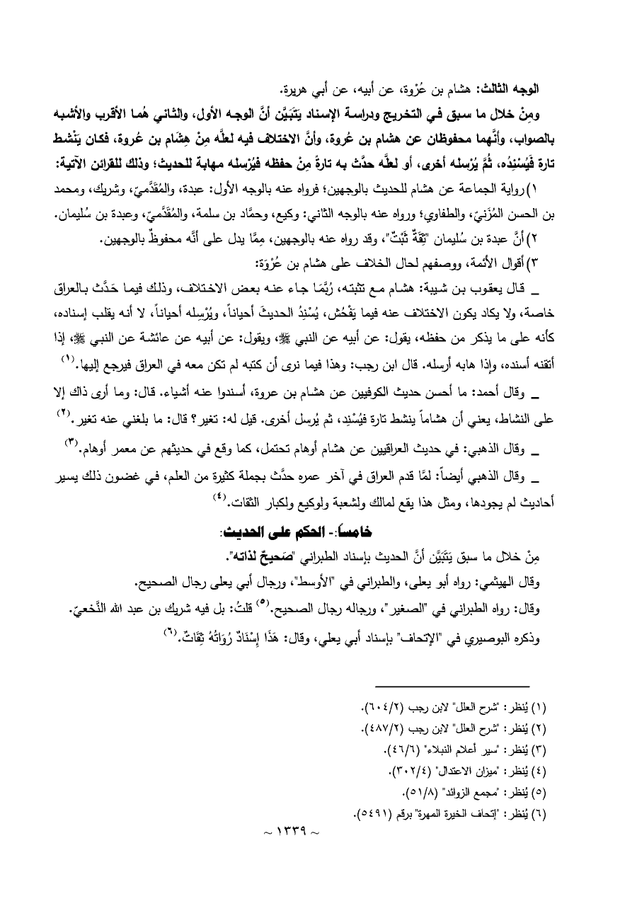 خامساً: - الحكم على الحديث: