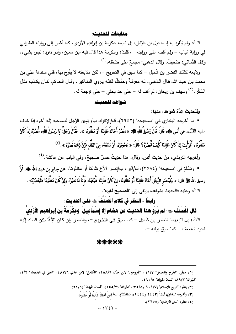 (¬٣) وأخرجه البخاري أيضاً (٢٤٤٣ و ٢٤٤٤)، ك/المظالم، ب/أَعِنْ أَخَاكَ ظَالِمًا أَوْ مَظْلُومًا.