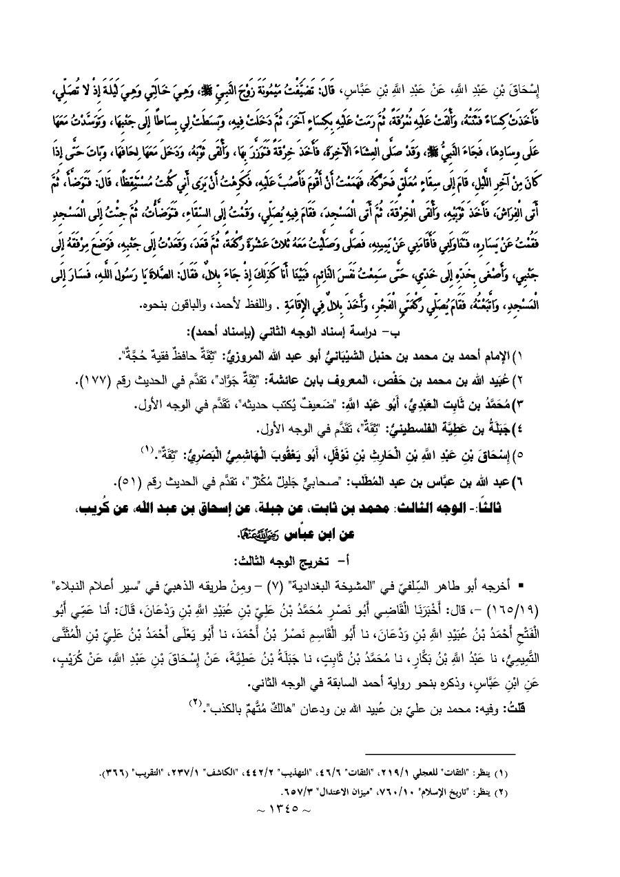 ثالثًا: - الوجه الثالث: محمد بن ثابت، عن جبلة، عن إسحاق بن عبد الله، عن كُريب، ... عن ابن عبَّاس ¶.