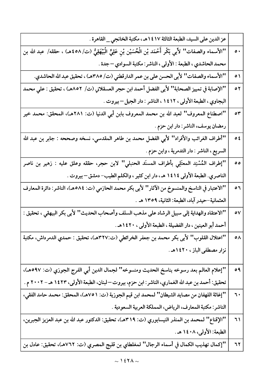 ٦٢ - "إكمال تهذيب الكمال في أسماء الرجال" لمغلطاي بن قليج المصري (ت: ٧٦٢ هـ)، تحقيق: عادل بن محمد - أسامة بن إبراهيم، الناشر: الفاروق الحديثة للطباعة والنشر.
