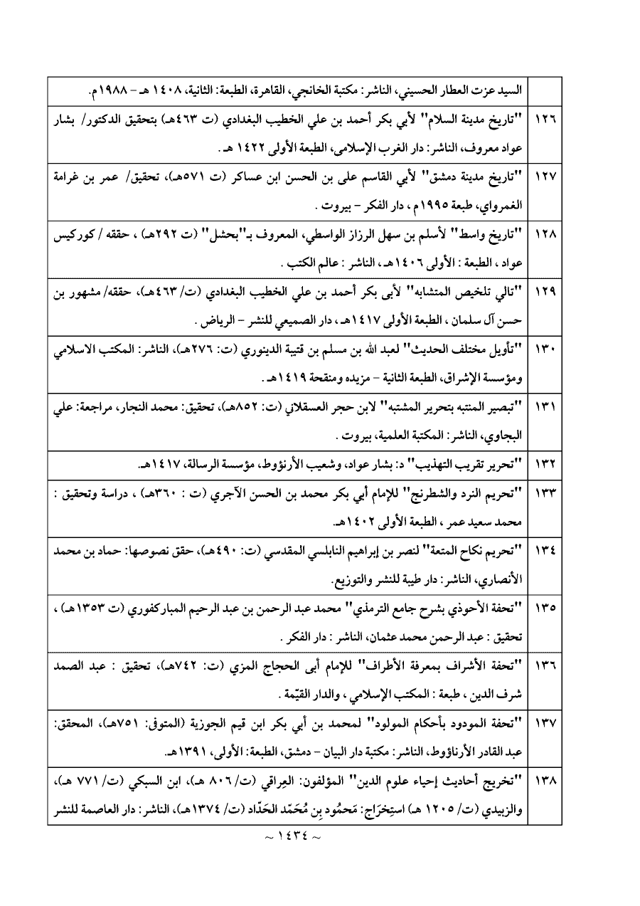 ١٣٢ - "تحرير تقريب التهذيب" د: بشار عواد، وشعيب الأرنؤوط، مؤسسة الرسالة، ١٤١٧ هـ.