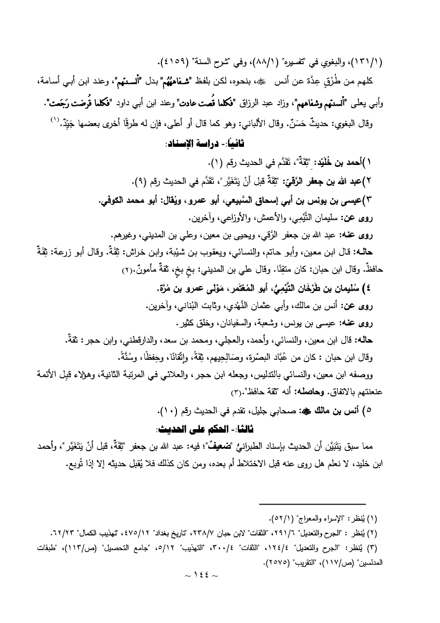 (¬٢) يُنظر: "الجرح والتعديل" ٦/ ٢٩١، "الثقات" لابن حبان ٧/ ٢٣٨، "تاريخ بغداد" ١٢/ ٤٧٥، "تهذيب الكمال" ٢٣/ ٦٢.