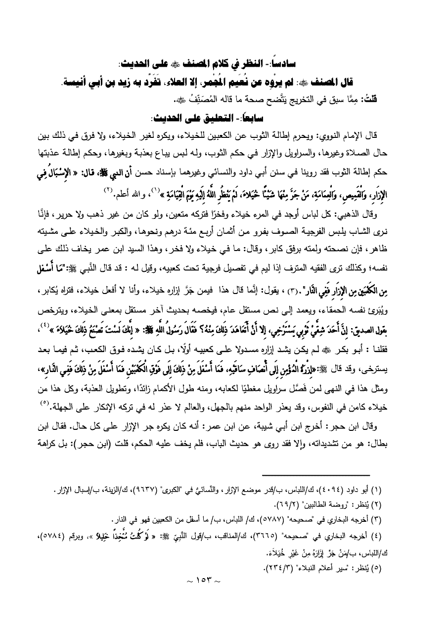 (¬١) أبو داود (٤٠٩٤)، ك/اللباس، ب/قدر موضع الإزار، والنَّسائيُّ في "الكبرى" (٩٦٣٧)، ك/الزينة، ب/إسبال الإزار.