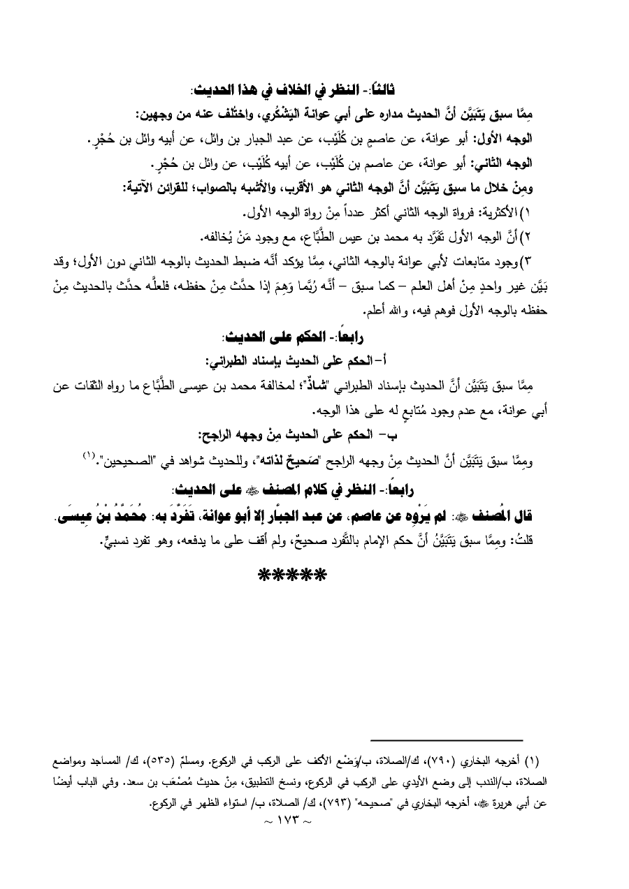 ثالثاً:- النظر في الخلاف في هذا الحديث: