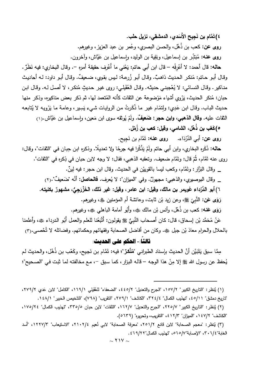 _ وقال البَزّار: وتَمَّام، وكعب ليسا بالقوييْن في الحديث. وقال ابن حجر: فيه لِينٌ.