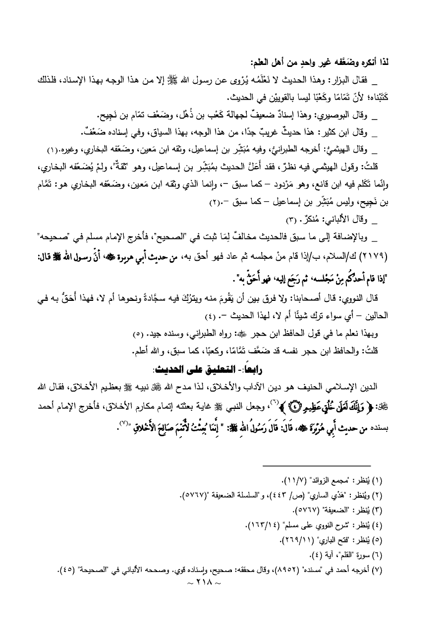 لذا أنكره وضَعَّفه غير واحدٍ من أهل العلم: