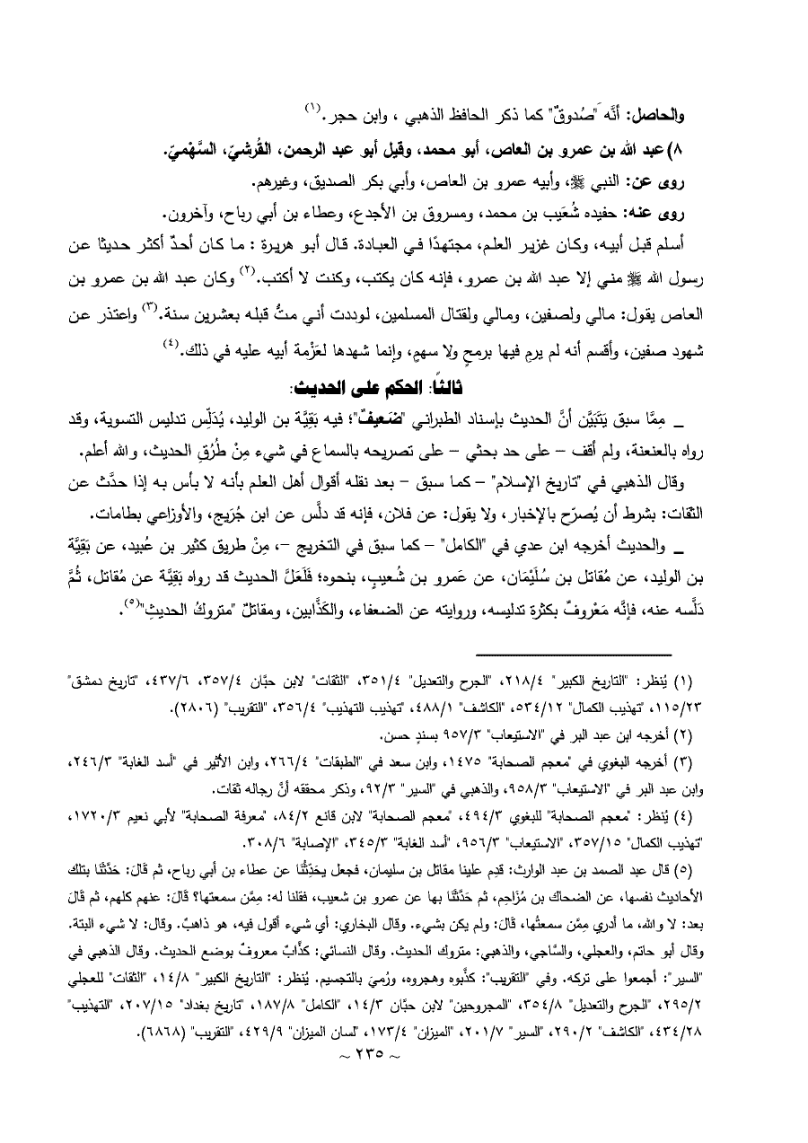 ٨) عبد الله بن عمرو بن العاص، أبو محمد، وقيل أبو عبد الرحمن، القُرشيّ، السَّهْميّ.
