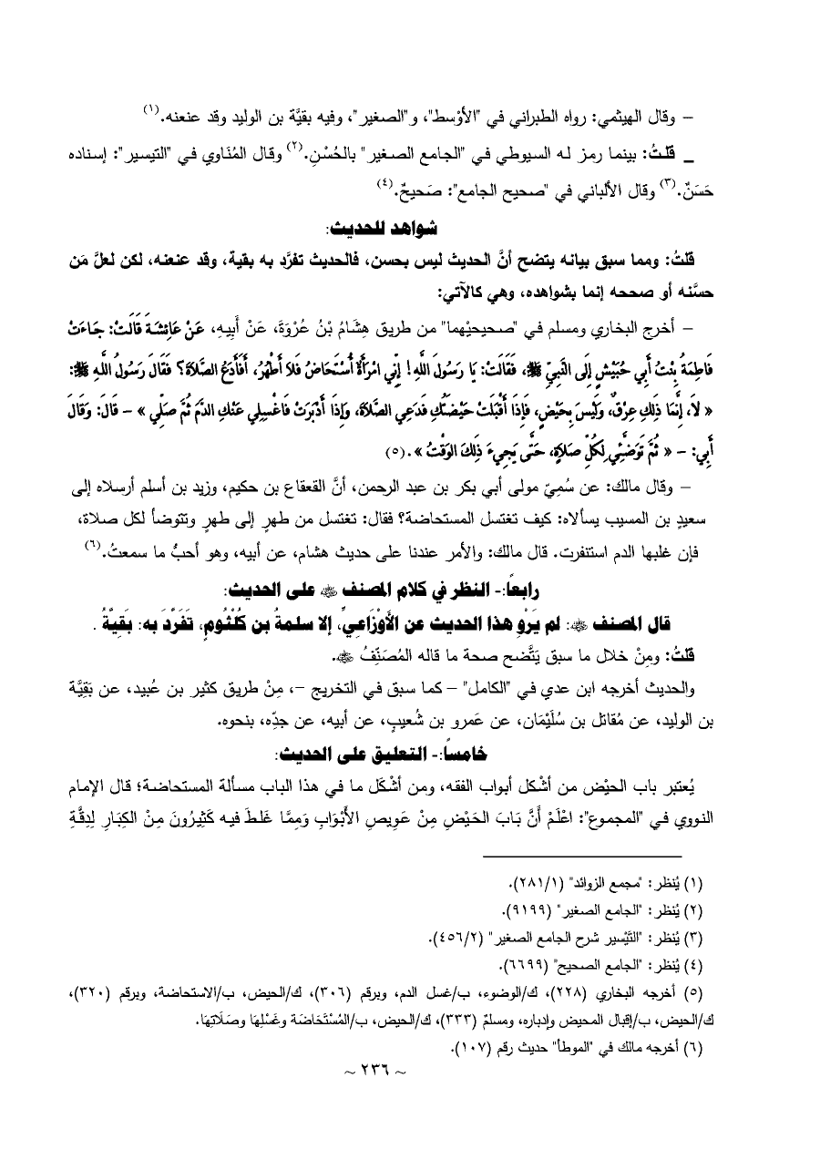 (¬٥) أخرجه البخاري (٢٢٨)، ك/الوضوء، ب/غسل الدم، وبرقم (٣٠٦)، ك/الحيض، ب/الاستحاضة، وبرقم (٣٢٠)، ك/الحيض، ب/إقبال المحيض وإدباره، ومسلمٌ (٣٣٣)، ك/الحيض، ب/المُسْتَحَاضَة وغَسْلِهَا وصَلَاتِهَا.