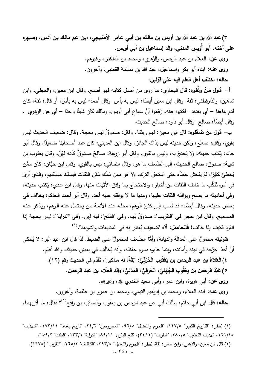 أ قول مَنْ وثَّقوه: قال البخاري: ما روى من أصل كتابه فهو أصح. وقال ابن معين، والعجلي، وابن شاهين، والدَّارقطني: ثقة. وقال ابن معين أيضًا: ليس به بأس. وقال أحمد: ليس به بأسٌ، أو قال: ثقة، كان قَدِم هاهنا - أي بغداد- فكتبوا عنه، زَعَمُوا أنَّ سماع أبي أُويس، ومالك كان شيئًا واحدًا - أي عن الزهري-. وقال أيضًا: صالح. وقال أبو داود: صالح الحديث.