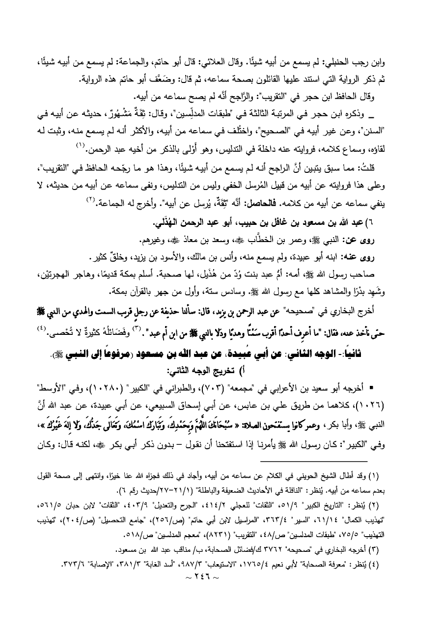 (¬١) وقد أطال الشيخ الحويني في الكلام عن سماعه من أبيه، وأجاد في ذلك فجزاه الله عنا خيرًا، وانتهى إلى صحة القول بعدم سماعه من أبيه. يُنظر: "النافلة في الأحاديث الضعيفة والباطلة" (١/ ٢١ - ٢٧/حديث رقم ٦).