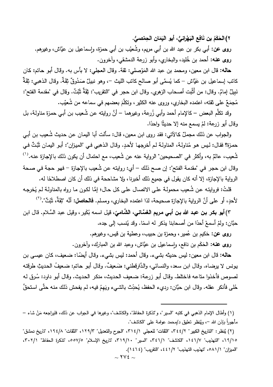 ٢) الحَكَمُ بن نَافِع البَهْرانيُّ، أبو اليَمَان الحِمْصيُّ.