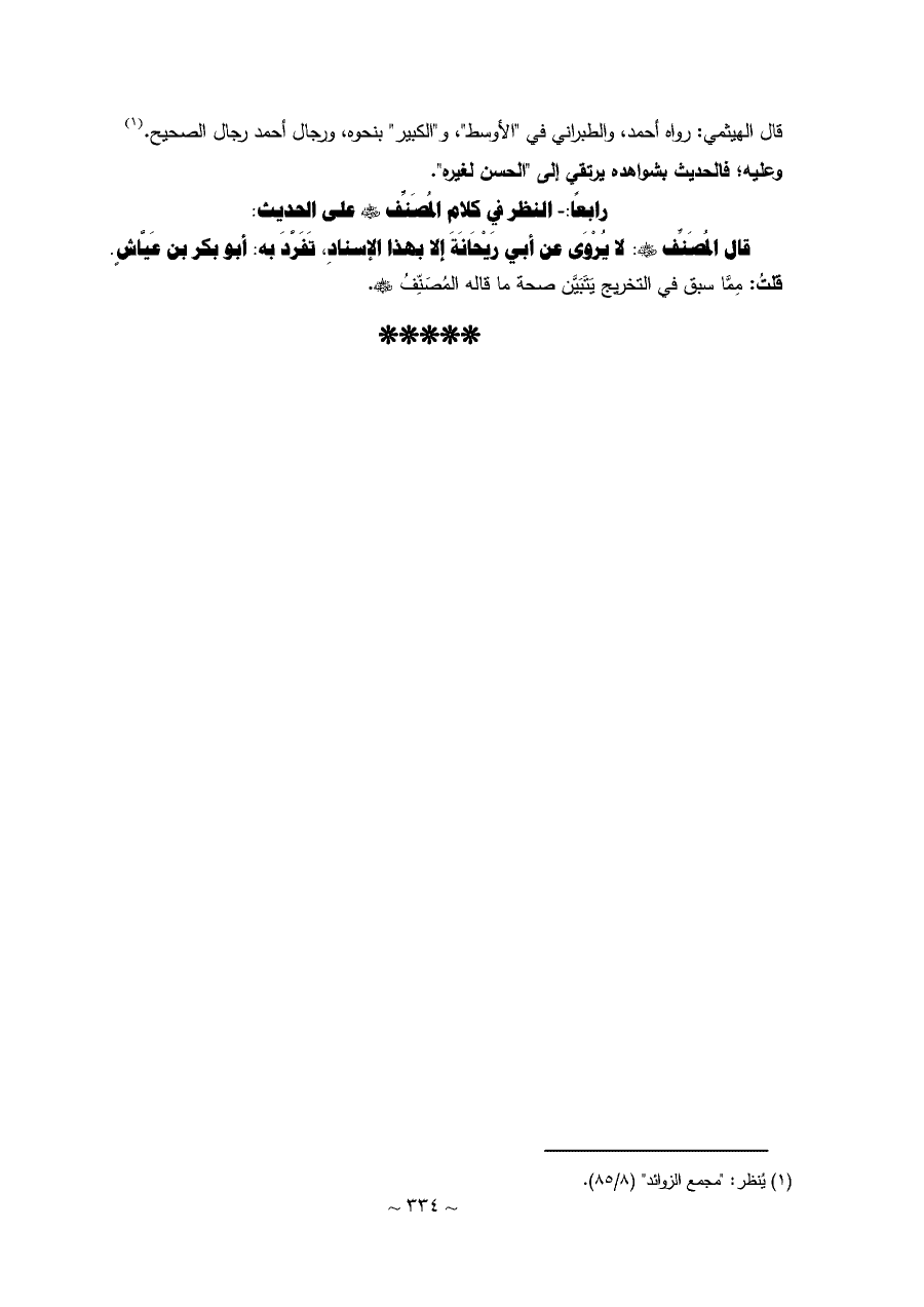(¬١) يُنظر: "مجمع الزوائد" (٨/ ٨٥).