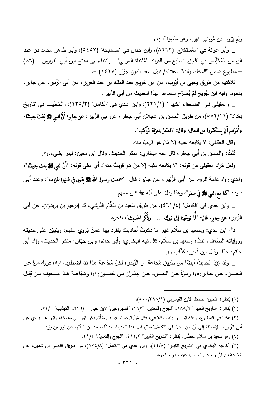 (¬٥) أخرجه البخاري في "التاريخ الكبير" (٨/ ٤٤)، وابن عدي في "الكامل" (٨/ ١٧٤)، من طريق النضر بن شميل، عن مُجّاعة بن الزّبير، عن الحسن، عن جابر، بنحوه.