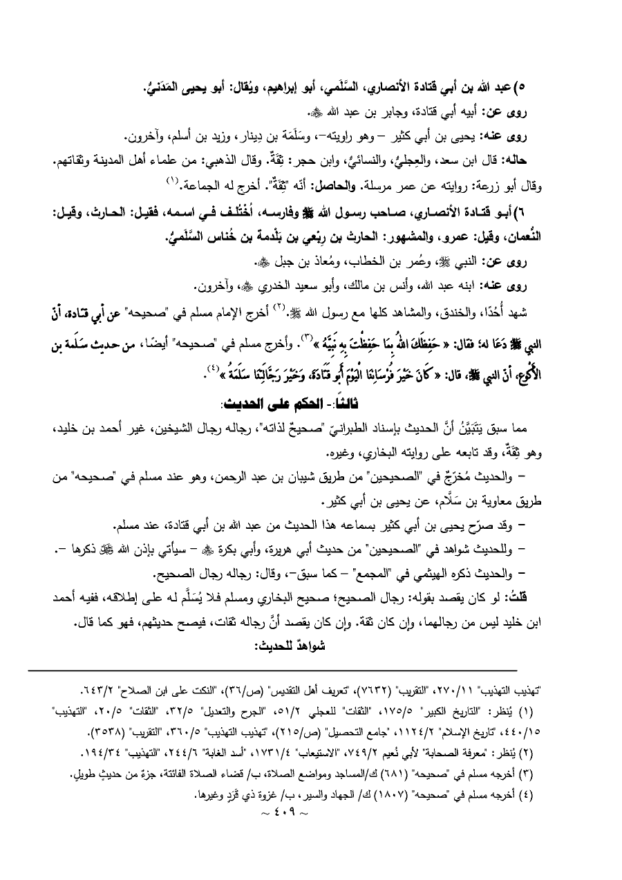 - وقد صرّح يحيى بن أبي كثير بسماعه هذا الحديث من عبد الله بن أبي قتادة، عند مسلم.