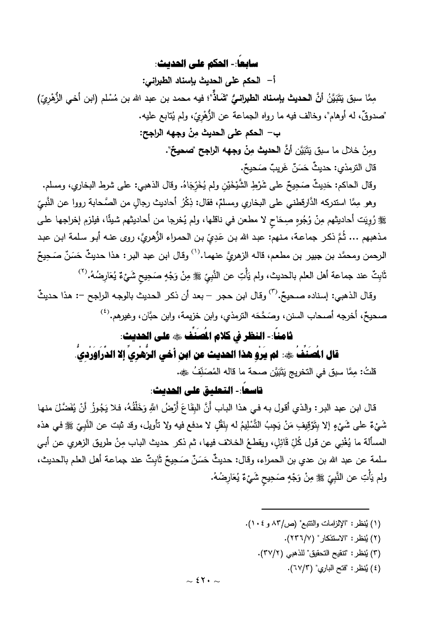 ثامنًا: - النظر في كلام المُصَنِّف - رضي الله عنه - على الحديث: