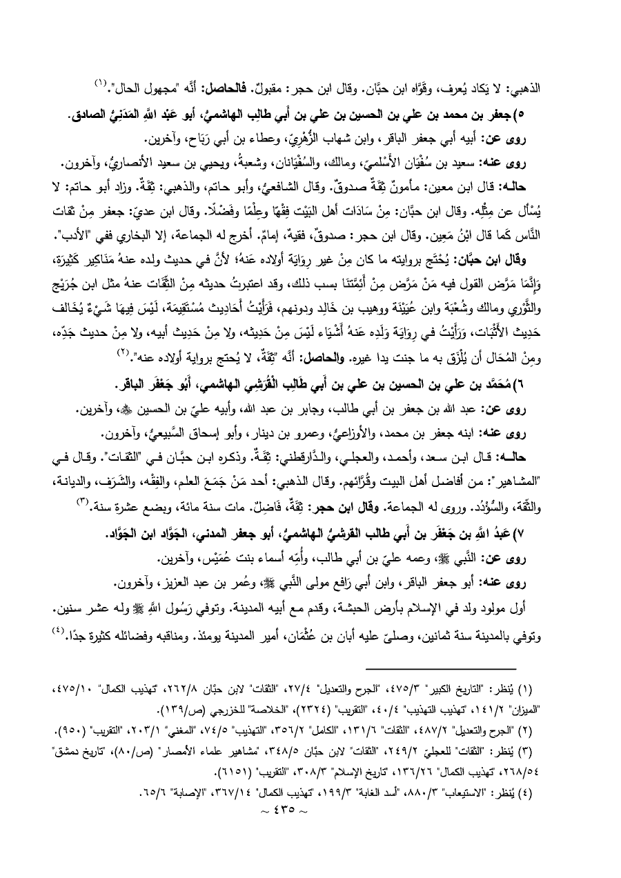 ٥) جعفر بن محمد بن علي بن الحسين بن علي بن أَبي طالِب الهاشميُّ، أبو عَبْد اللَّهِ المَدَنِيُّ الصادق.