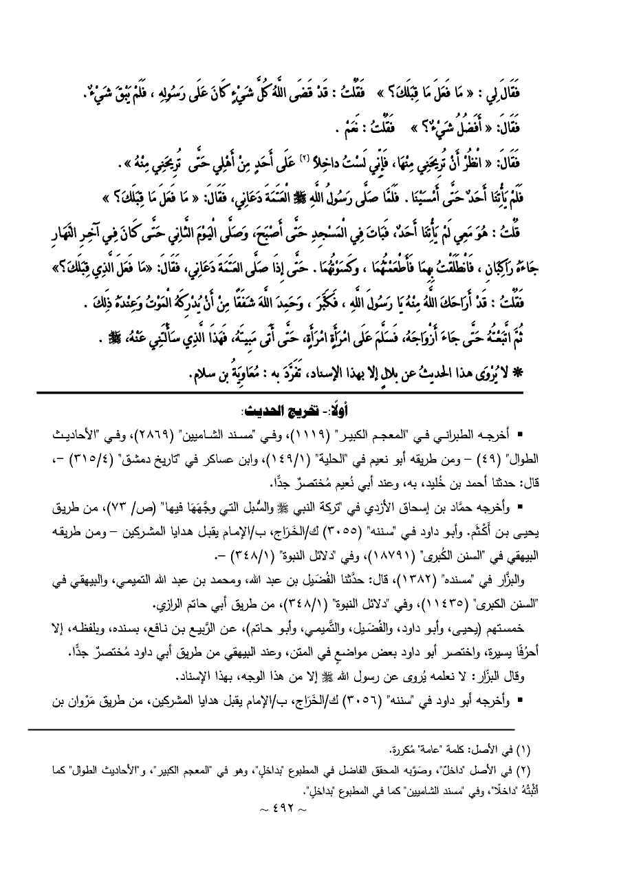 (¬١) في الأصل "داخلٌ"، وصَوَّبه المحقق الفاضل في المطبوع "بداخلٍ"، وهو في "المعجم الكبير"، و"الأحاديث الطوال" كما أثْبتُهُ "داخلًا"، وفي "مسند الشاميين" كما في المطبوع "بداخلٍ".