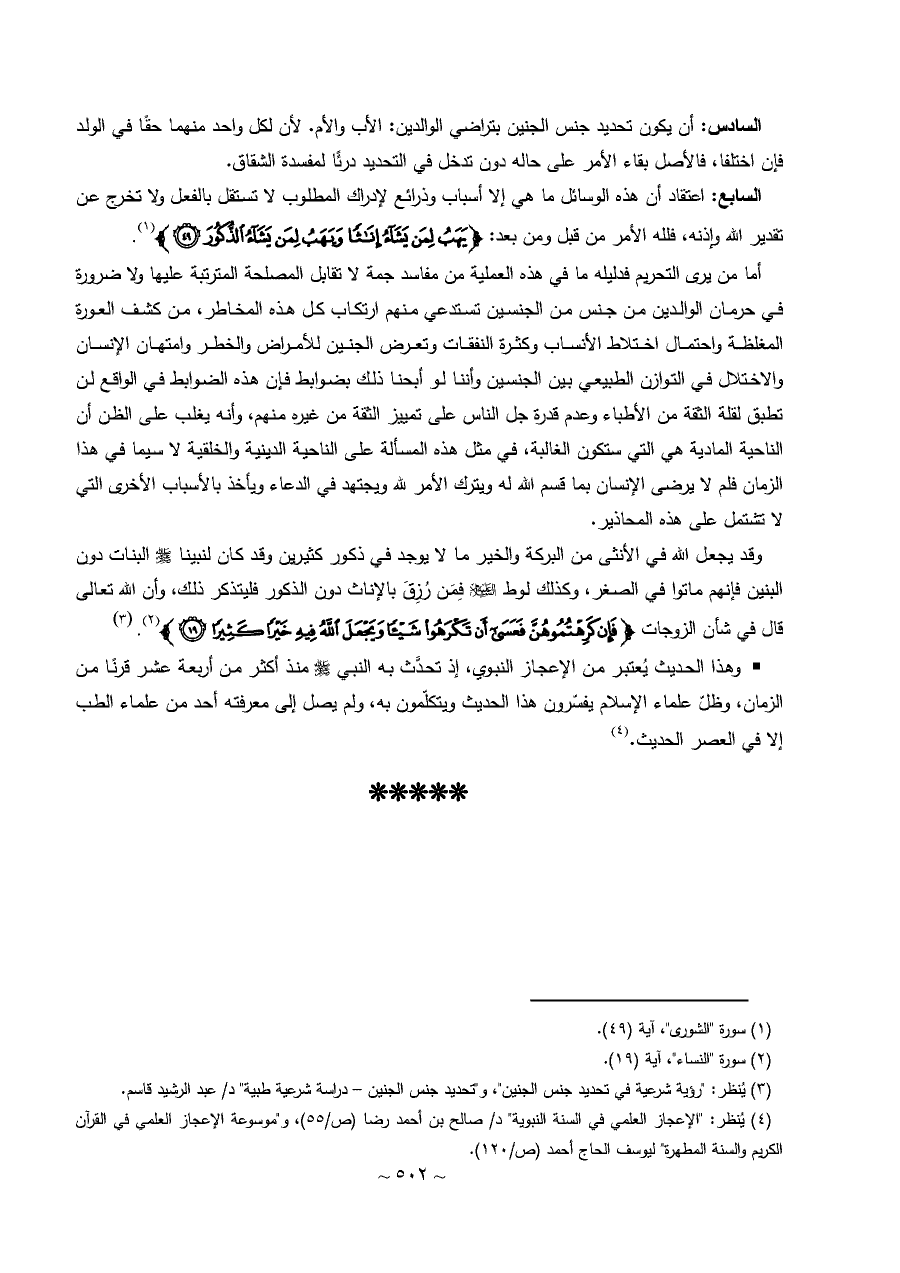 (¬٣) يُنظر: "رؤية شرعية في تحديد جنس الجنين"، و"تحديد جنس الجنين - دراسة شرعية طبية" د/ عبد الرشيد قاسم.