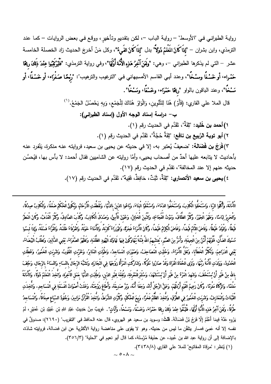 (¬١) يُنظر: "مرقاة المفاتيح" للملا علي القاري (٨/ ٣٤٣٨).