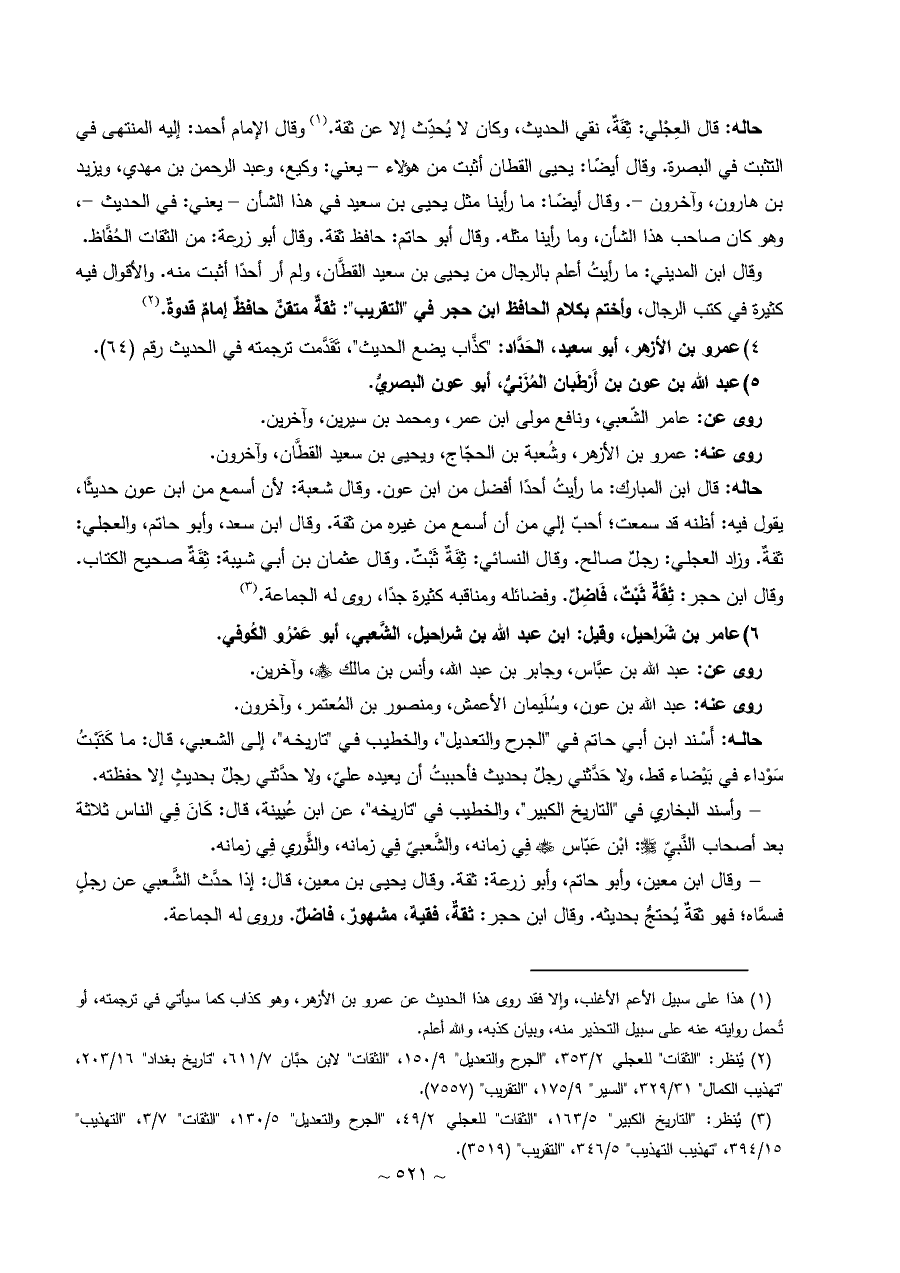 (¬٣) يُنظر: "التاريخ الكبير" ٥/ ١٦٣، "الثقات" للعجلي ٢/ ٤٩، "الجرح والتعديل" ٥/ ١٣٠، "الثقات" ٧/ ٣، "التهذيب" ١٥/ ٣٩٤، "تهذيب التهذيب" ٥/ ٣٤٦، "التقريب" (٣٥١٩).