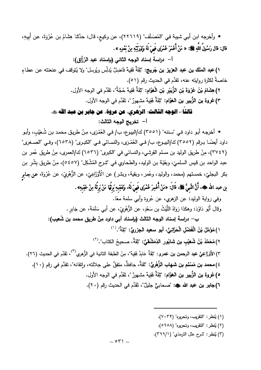 ٢) هِشَامُ بْنُ عُرْوَةَ بْنِ الزُّبَيْرِ بْنِ الْعَوَّامِ: "ثِقَةٌ فَقِيهٌ حُجَّةٌ"، تَقَدَّم في الوجه الأول.