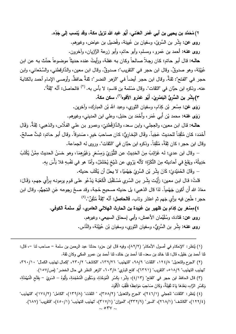 (¬٣) يُنظر: "الثقات" للعِجلي (١/ ٢٤٦)، "الجرح والتعديل" (٢/ ٣٥٨)، " الثقات" (٨/ ١٣٩)، "الكامل" (٢/ ١٧٤)، "التهذيب" (٤/ ١٢٢)، "الكاشف" (١/ ٢٦٨)، "السير" (٩/ ٣٣٢)، "الميزان" (١/ ٣١٧)، "تهذيب التهذيب" (١/ ٤٥٠)، "التقريب" (٦٨٧).