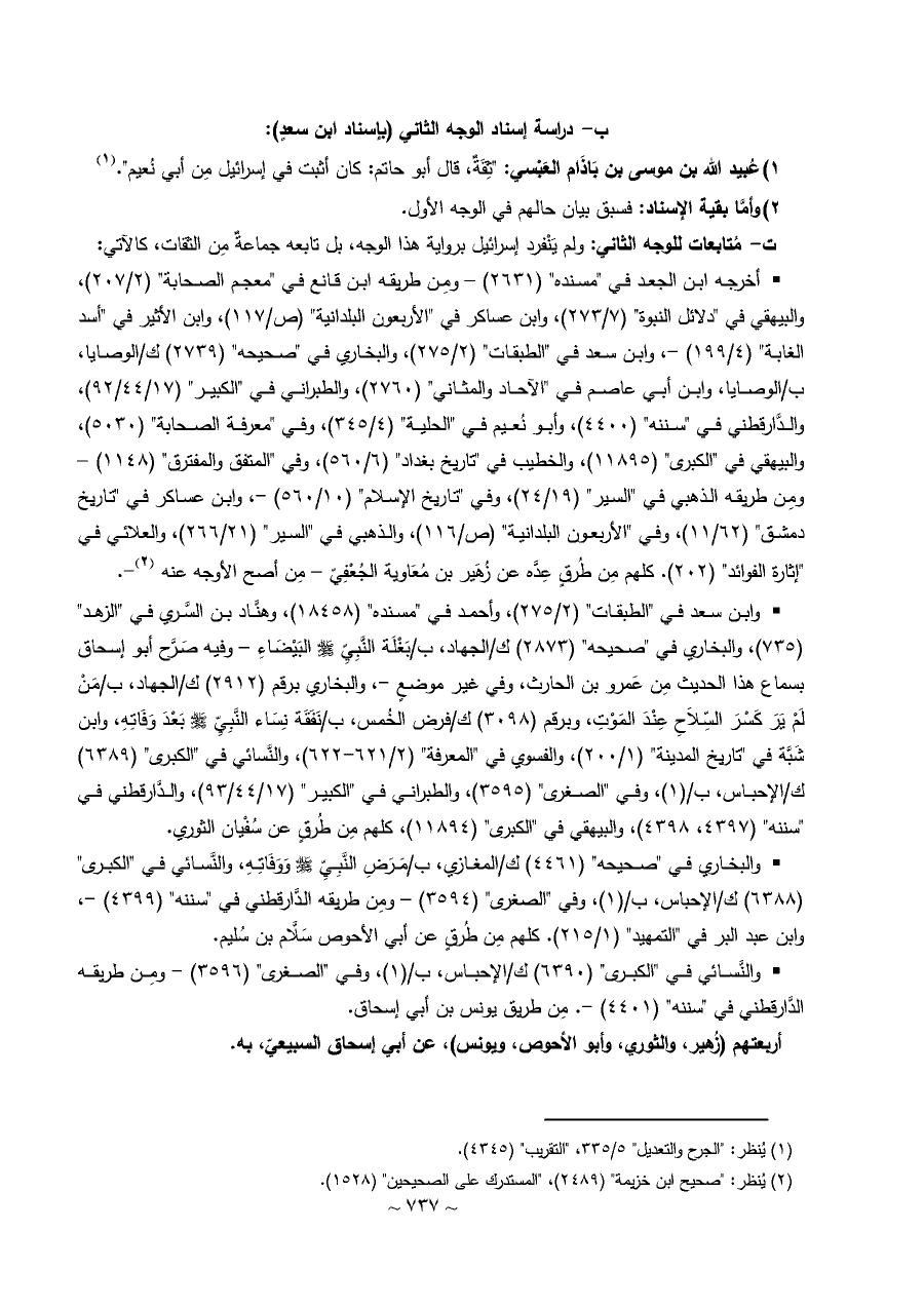 ب دراسة إسناد الوجه الثاني (بإسناد ابن سعدٍ):
