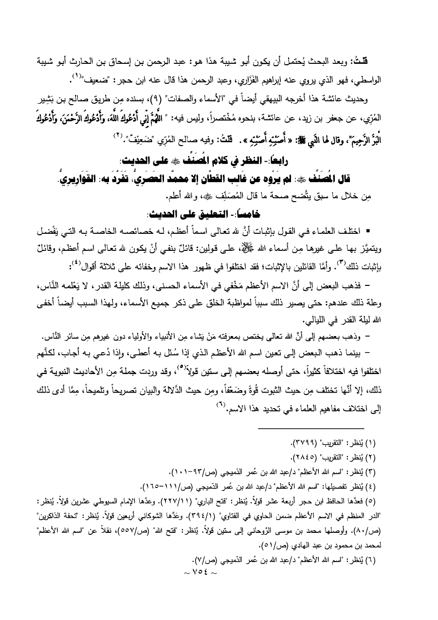 (¬٤) يُنظر تفصيلها: "اسم الله الأعظم" د/عبد الله بن عُمر الدّميجي (ص/١١١ - ١٦٥).