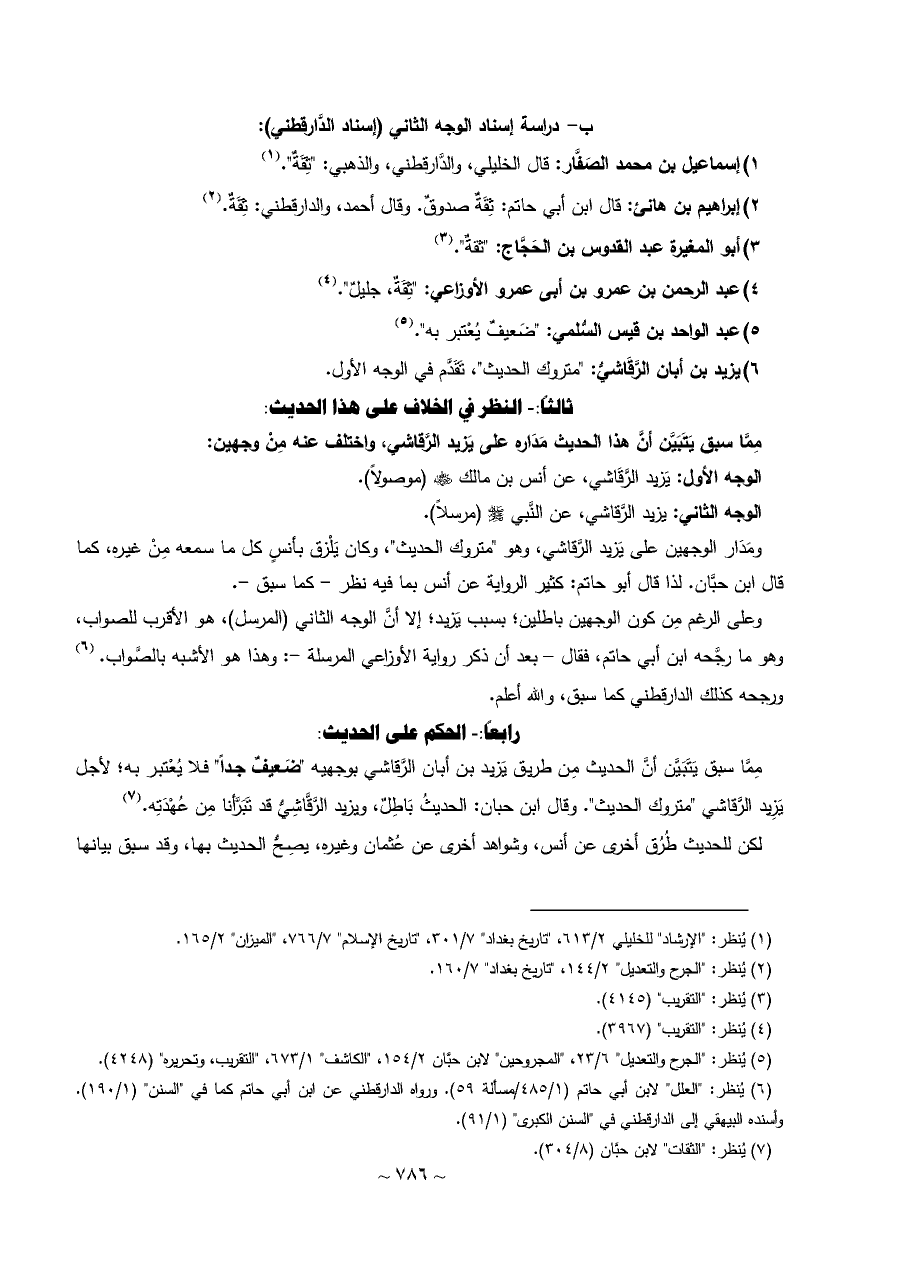 ٦) يزيد بن أبان الرَّقَاشيُّ: "متروك الحديث"، تَقَدَّم في الوجه الأول.