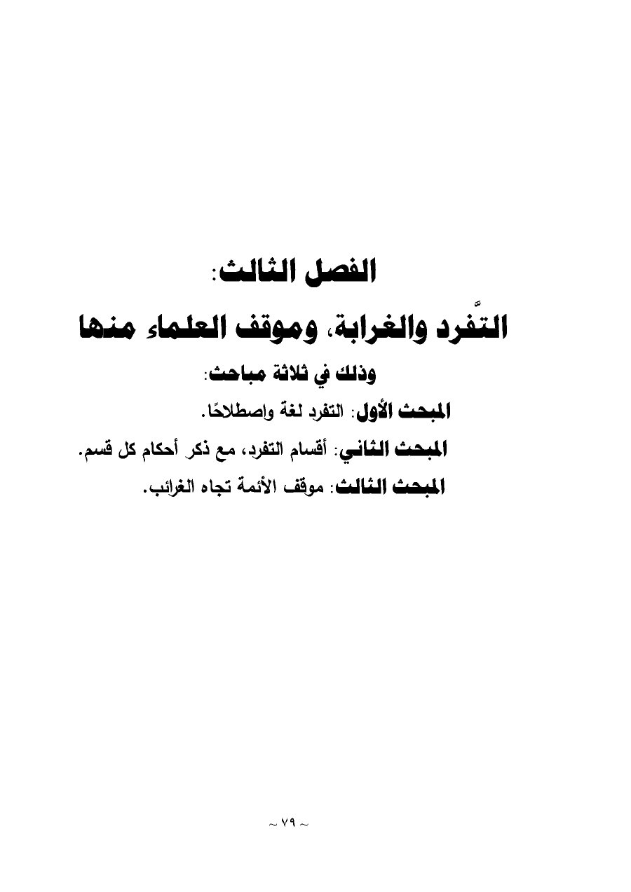 الفصل الثالث: التَّفرد والغرابة، وموقف العلماء منها