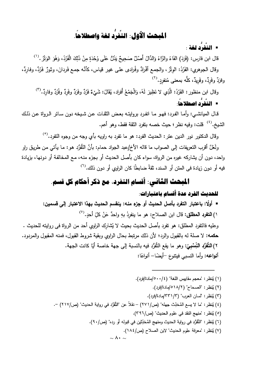 المبحث الأول: التَّفرُّد لغة واصطلاحًا.