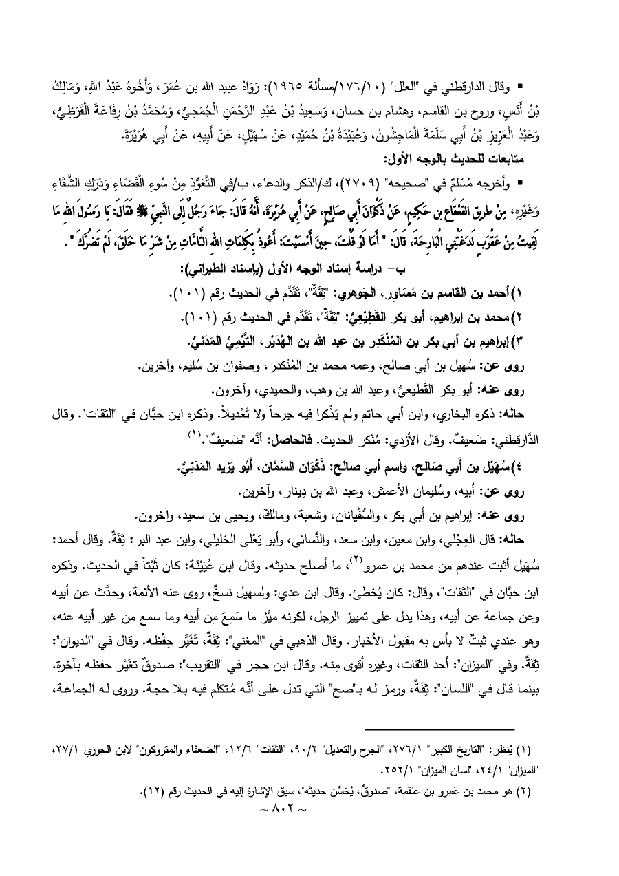 • وقال الدارقطني في "العلل" (١٠/ ١٧٦/مسألة ١٩٦٥): رَوَاهُ عبيد الله بن عُمَرَ، وَأَخُوهُ عَبْدُ اللَّهِ، وَمَالِكُ بْنُ أَنَسٍ، وروح بن القاسم، وهشام بن حسان، وَسَعِيدُ بْنُ عَبْدِ الرَّحْمَنِ الْجُمَحِيُّ، وَمُحَمَّدُ بْنُ رِفَاعَةَ الْقَرَظِيُّ، وَعَبْدُ الْعَزِيزِ بْنُ أَبِي سَلَمَةَ الْمَاجِشُونُ، وَعُبَيْدَةُ بْنُ حُمَيْدٍ، عَنْ سُهَيْلٍ، عَنْ أَبِيهِ، عَنْ أَبِي هُرَيْرَةَ.