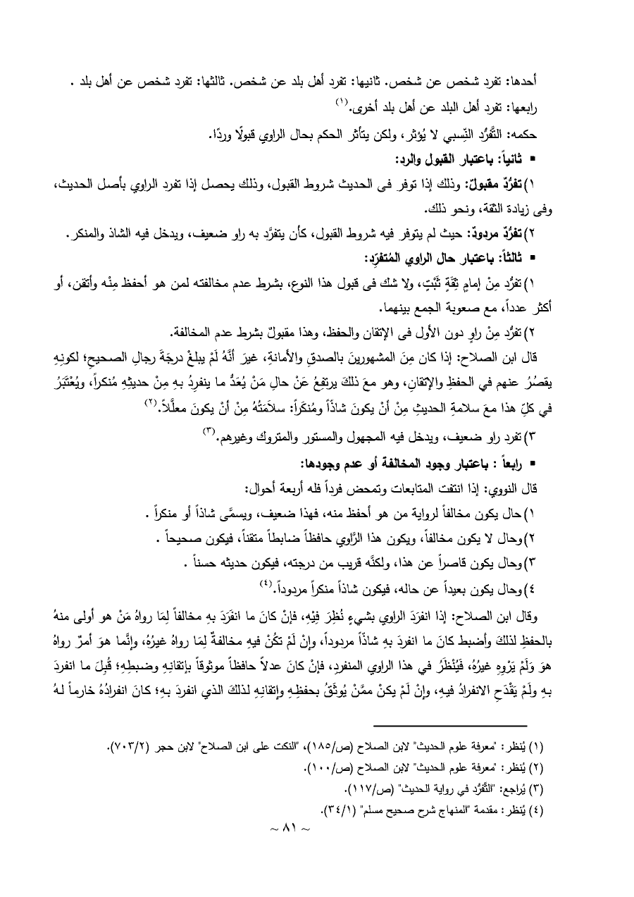 (¬٣) يُراجع: "التَّفرُّد في رواية الحديث" (ص/١١٧).