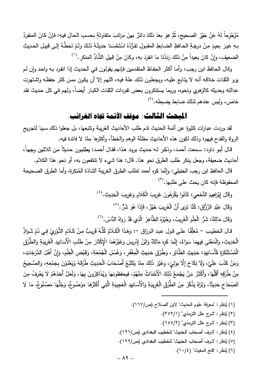المبحث الثالث: موقف الأئمة تجاه الغرائب.