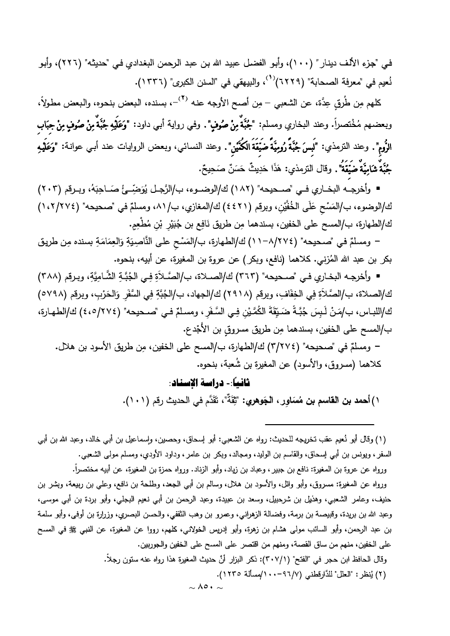 وقال الحافظ ابن حجر في "الفتح" (١/ ٣٠٧): ذكر البزار أنَّ حديث المغيرة هذا رواه عنه ستون رجلاً.