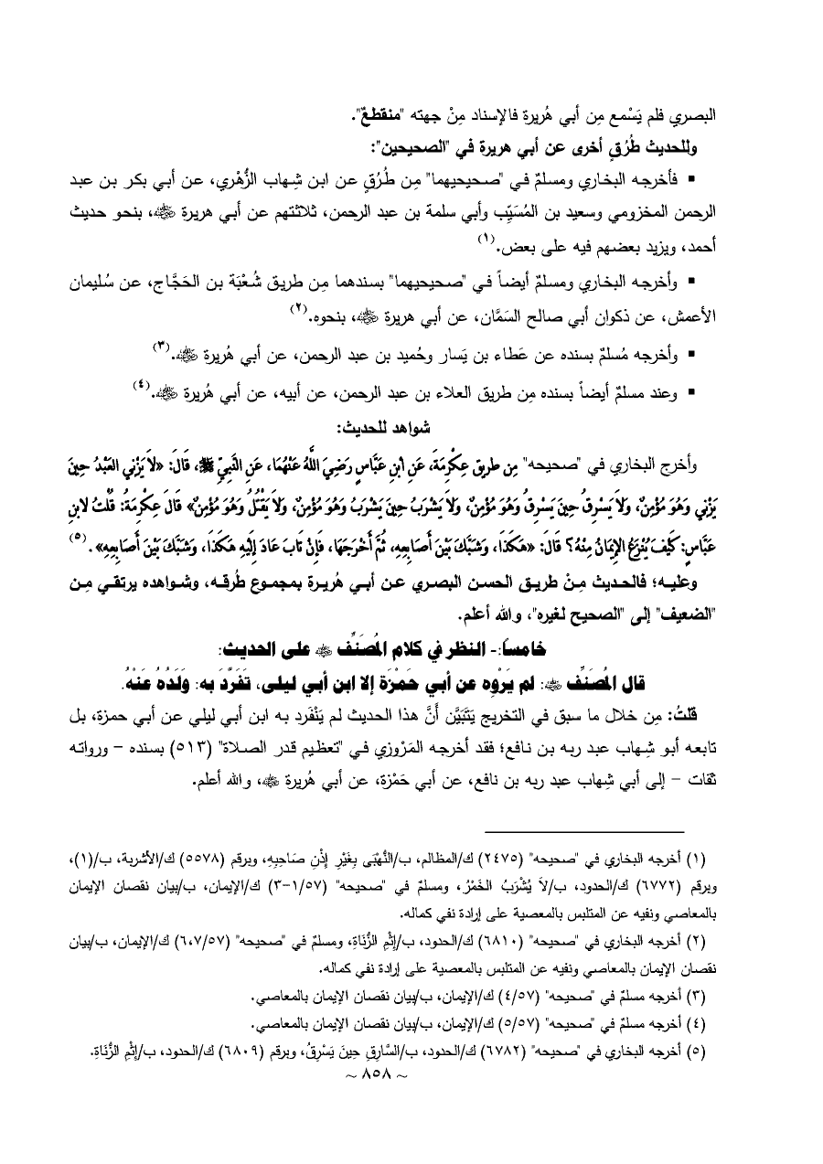 خامساً: - النظر في كلام المُصَنِّف - رضي الله عنه - على الحديث:
