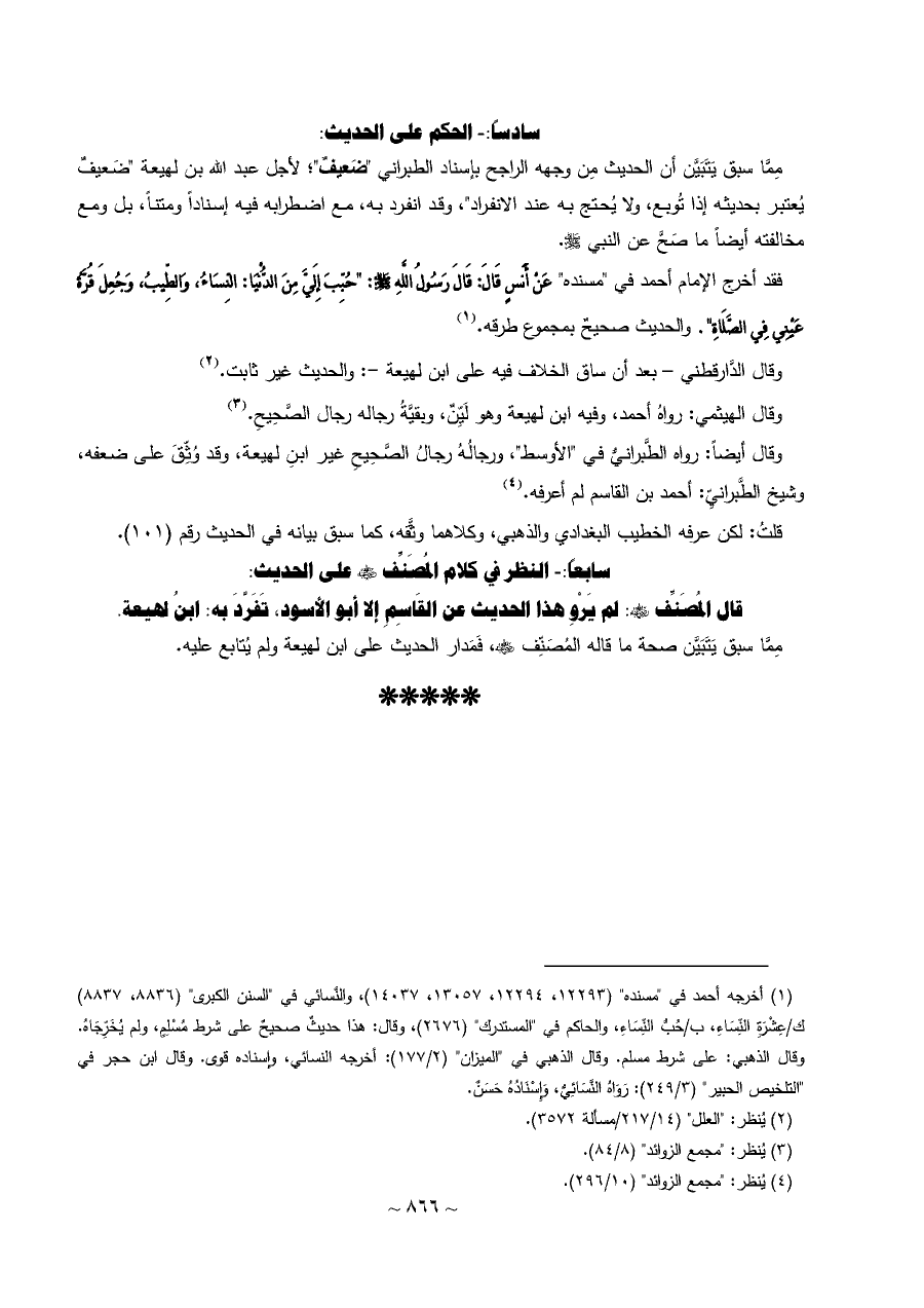 مِمَّا سبق يَتَبَيَّن صحة ما قاله المُصَنِّف - رضي الله عنه -، فَمَدار الحديث على ابن لهيعة ولم يُتابع عليه.