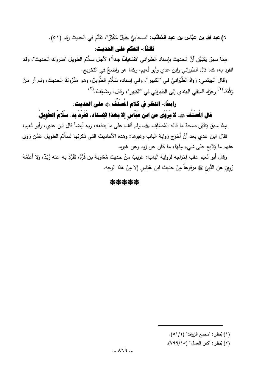 ٦) عبد الله بن عبَّاس بن عبد المُطَلب: "صحابيٌّ جَليلٌ مُكْثرٌ"، تَقَدَّم في الحديث رقم (٥١).