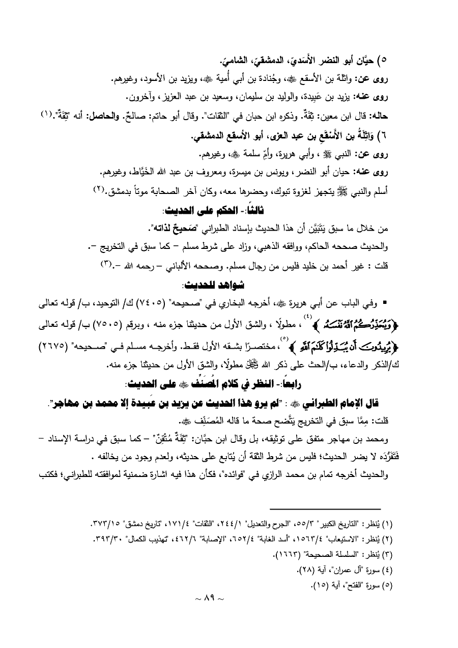 ٥) حيَّان أبو النضر الأَسَديّ، الدمشقيّ، الشاميّ.
