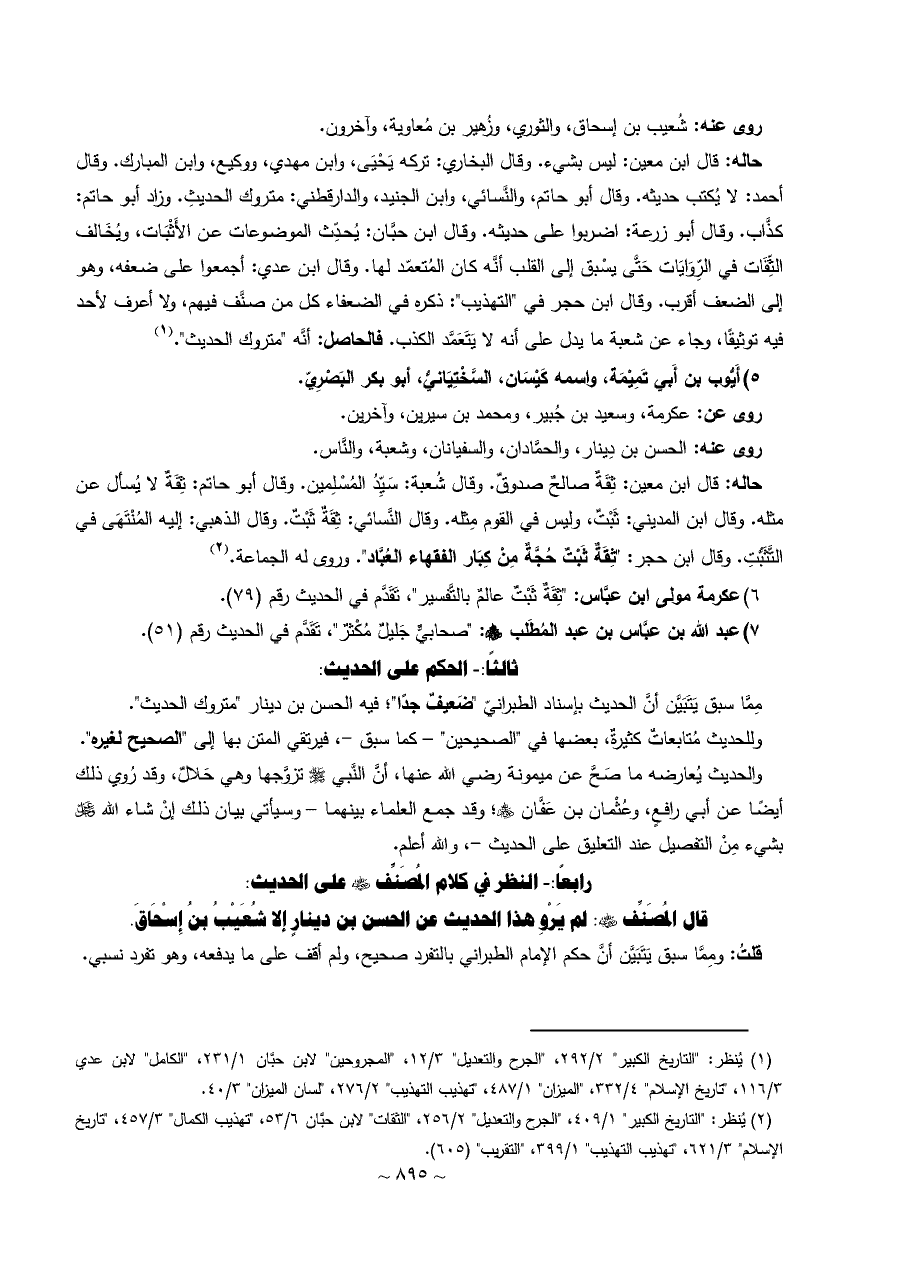 قلتُ: ومِمَّا سبق يَتَبَيَّن أنَّ حكم الإمام الطبراني بالتفرد صحيح، ولم أقف على ما يدفعه، وهو تفرد نسبي.