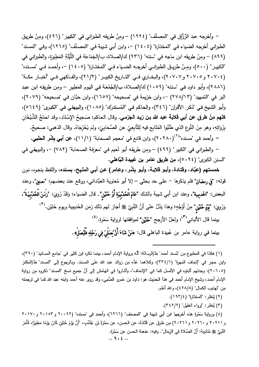 بينما قال الألباني (¬٣): ولعلَّ الأرجح "حُنَيْن" لموافقتها لرواية سَمُرة. (¬٤)