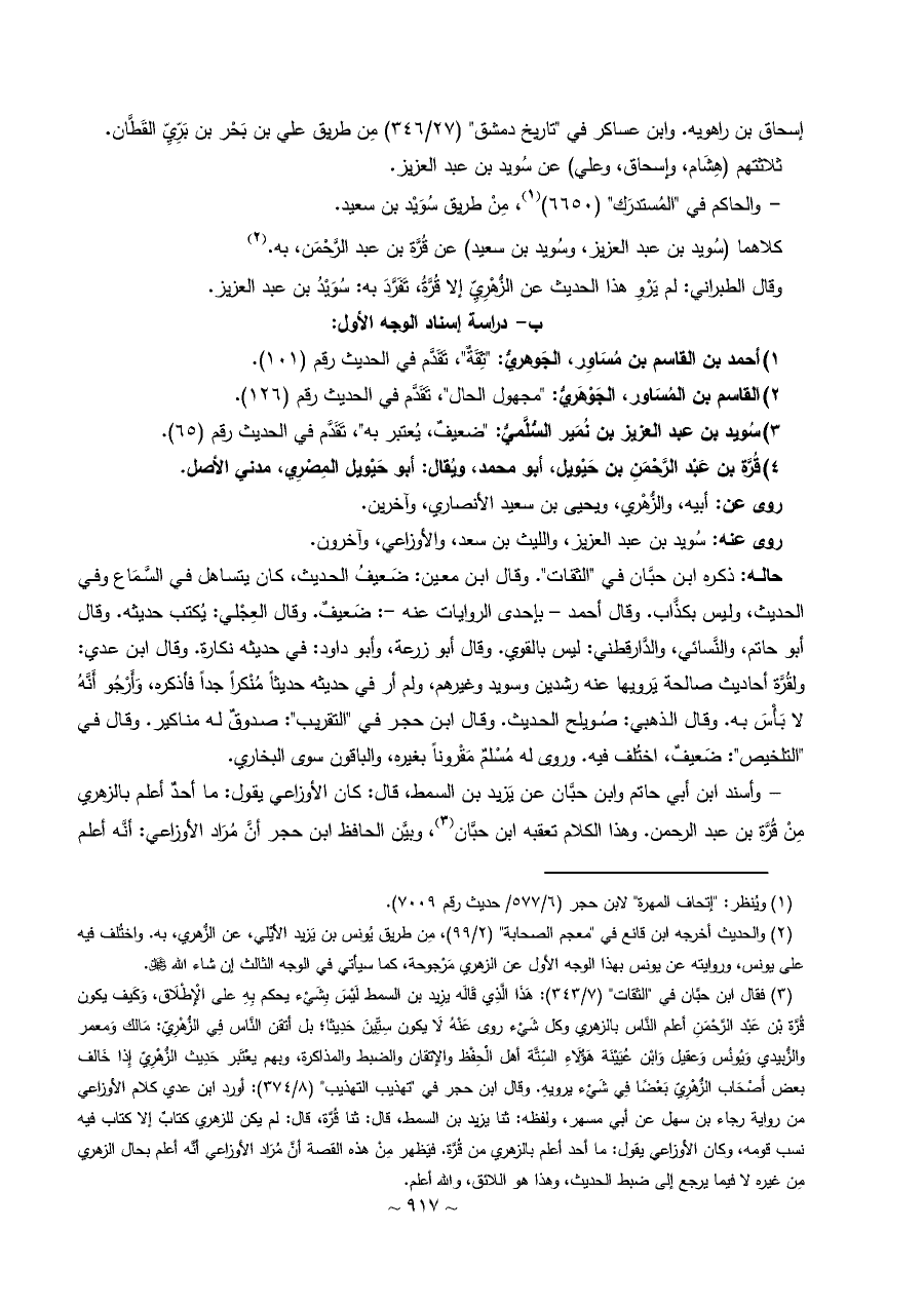 ب دراسة إسناد الوجه الأول: